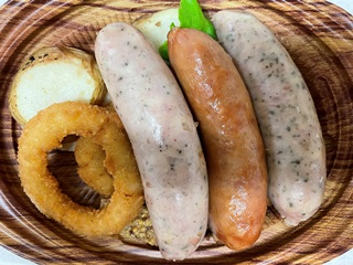 みちのく育ちのハンバーグ、広島県江田島産大粒牡蠣フライ、3種ソーセージのビアプレートを購入。
