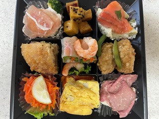 美水スモークの10品目サラダ、9種のごちそうDISH、5種類のチーズが入ったハンバーグを購入。
