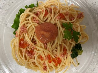 海老とイカの冷製ペスカトーレ、コク旨!つぶつぶ明太子のサラダパスタ、うずらフライ串を購入。