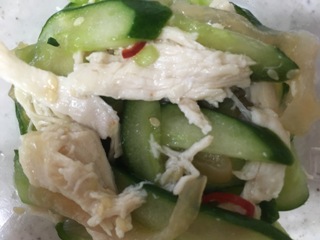 海老のチリソース、森林鶏と胡瓜とくらげの冷製、チャーハンを購入。